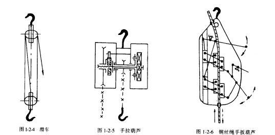 包括鋼絲繩手扳葫蘆和環(huán)鏈?zhǔn)职夂J2種。它是由人力通過扳動手柄驅(qū)動鋼絲繩夾持器或鏈輪卷放裝置,帶動取物裝置運動的起重設(shè)備。圖1-2-6為鋼絲繩手扳葫蘆